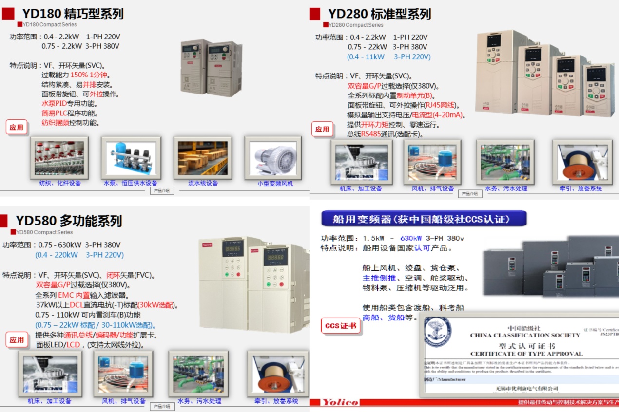- YD3000N-CCS船用:獲得CCS中國船級社認(rèn)證,支持船用推進(jìn)系列、空調(diào)水泵等傳動設(shè)備。