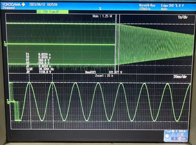 變頻器以39.3HZ(157rpm)運(yùn)行時的電流電壓波形